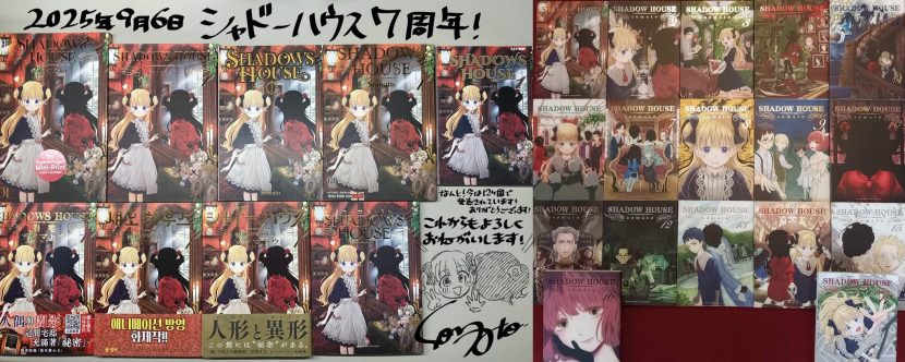 シャドーハウスは7周年を迎え、ソウマトウ先生が自身のアカウントで、各国版のコミックス写真を公開し、これまで応援してくれたファンに感謝の言葉を伝えました。